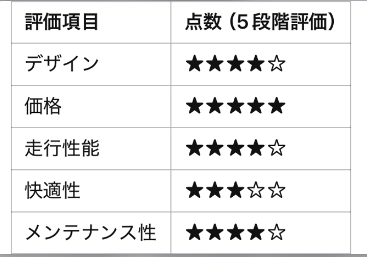 コスパが良く、走行性能も高評価 を得ていますが、足つきや収納面での不満がややある という評価です。
