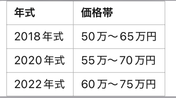 年式が新しいものほど高く、走行距離が 2万km未満の個体 は人気があります。