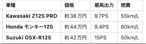 ✔ ライバルバイク3車種との比較とおすすめカスタム