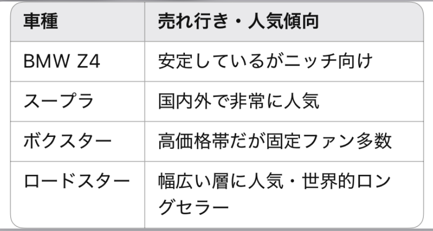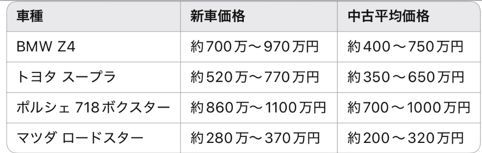 Z4はスープラと同じエンジンを搭載しながら、価格帯はやや高め。