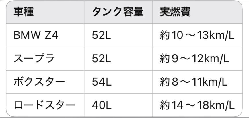 タンク容量と燃費の比較