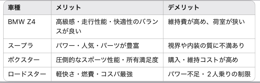 【徹底比較】BMW Z4・スープラ・718ボクスター・ロードスター|どれが買いか?スペック・価格・口コミから評価!