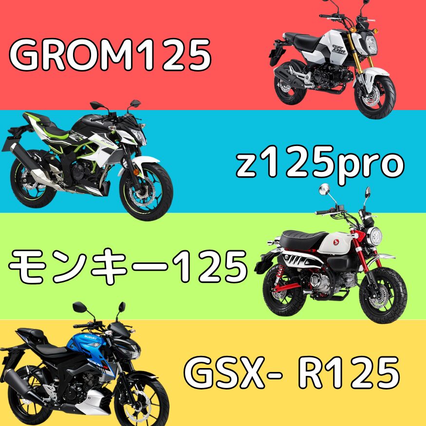 125ccクラスのバイクは、 原付二種 に分類され、街乗りやツーリングに最適なモデルが多く存在します。その中でも 「GROM125」「Z125 PRO」「モンキー125」「GSX-R125」 は特に人気のあるバイクで、購入を検討している方の多くがこの4台を比較しています。