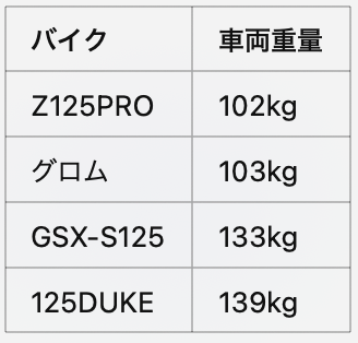 ✅ Z125PRO・グロムは軽くて扱いやすい