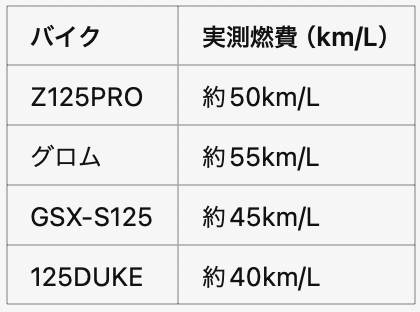 ✅ 125DUKEは燃費が悪めだが、走行性能が高い