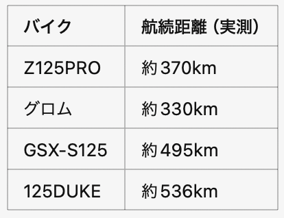 ✅ 長距離ツーリングならGSX-S125・125DUKEが圧倒的