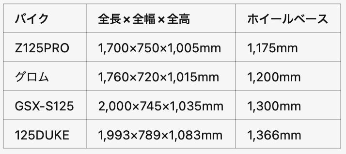 ✅ Z125PROとグロムはコンパクトで取り回しが良い