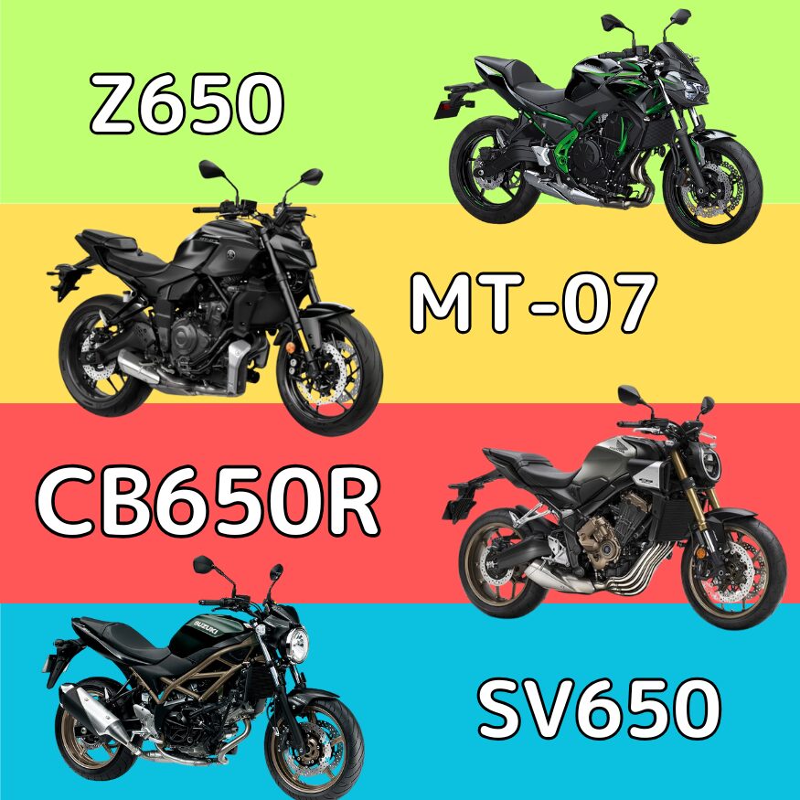 Kawasaki Z650を購入しようと考えている人は、同じミドルクラスのネイキッドバイクとしてYamaha MT-07、Honda CB650R、Suzuki SV650と比較することが多いでしょう。