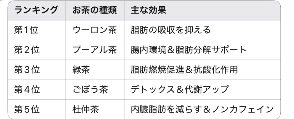 •体脂肪を減らす効果が期待できるお茶の種類Top5