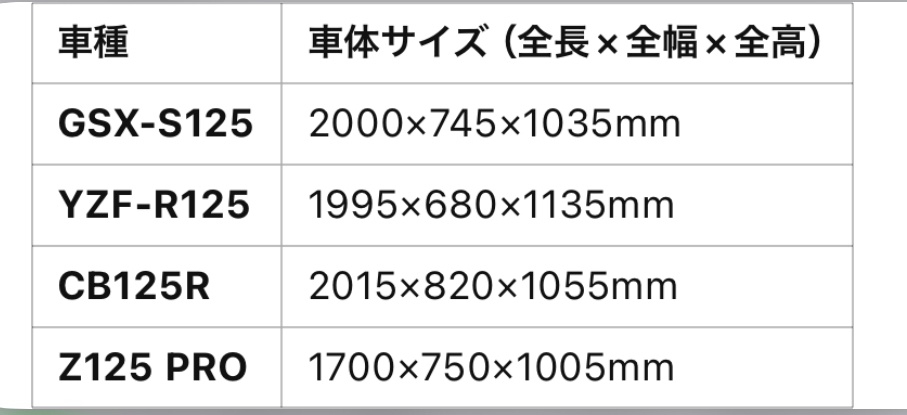 ✅ Z125 PROが最もコンパクト で取り回しが楽