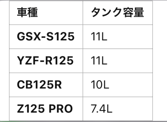 ✅ GSX-S125とYZF-R125は11Lで長距離向き