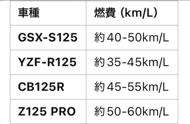 ✅ YZF-R125は燃費がやや悪い が、走行性能が高い