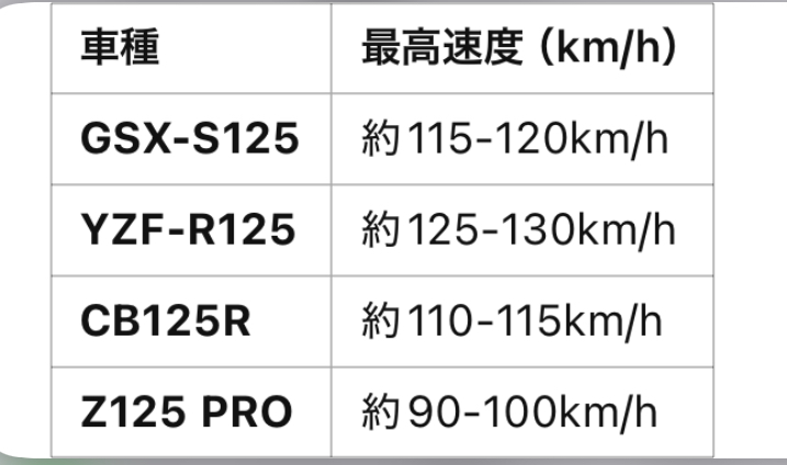 最高速度は スポーティな走りを求めるライダーにとって重要 です。