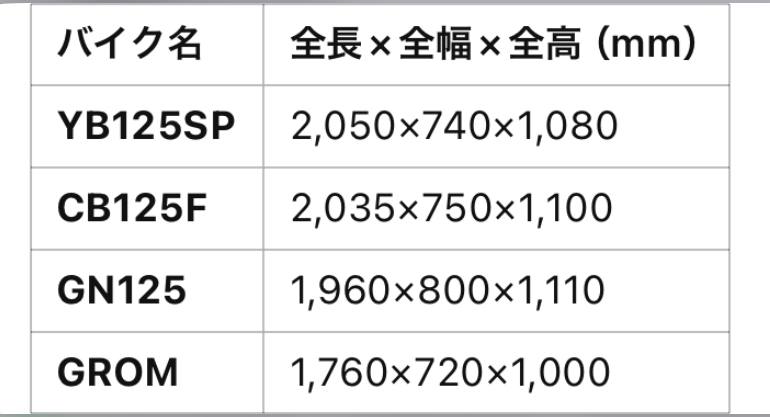 YB125SP・CB125F・GN125はネイキッドスタイルで比較的サイズが近い。