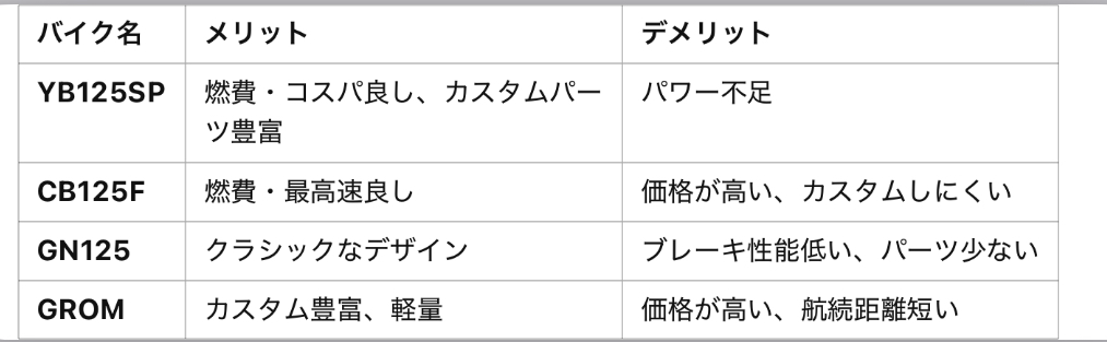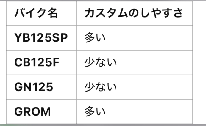 この記事では YB125SP・CB125F・GN125・GROMの4台を徹底比較 し、あなたに最適なバイクを見つける手助けをします!