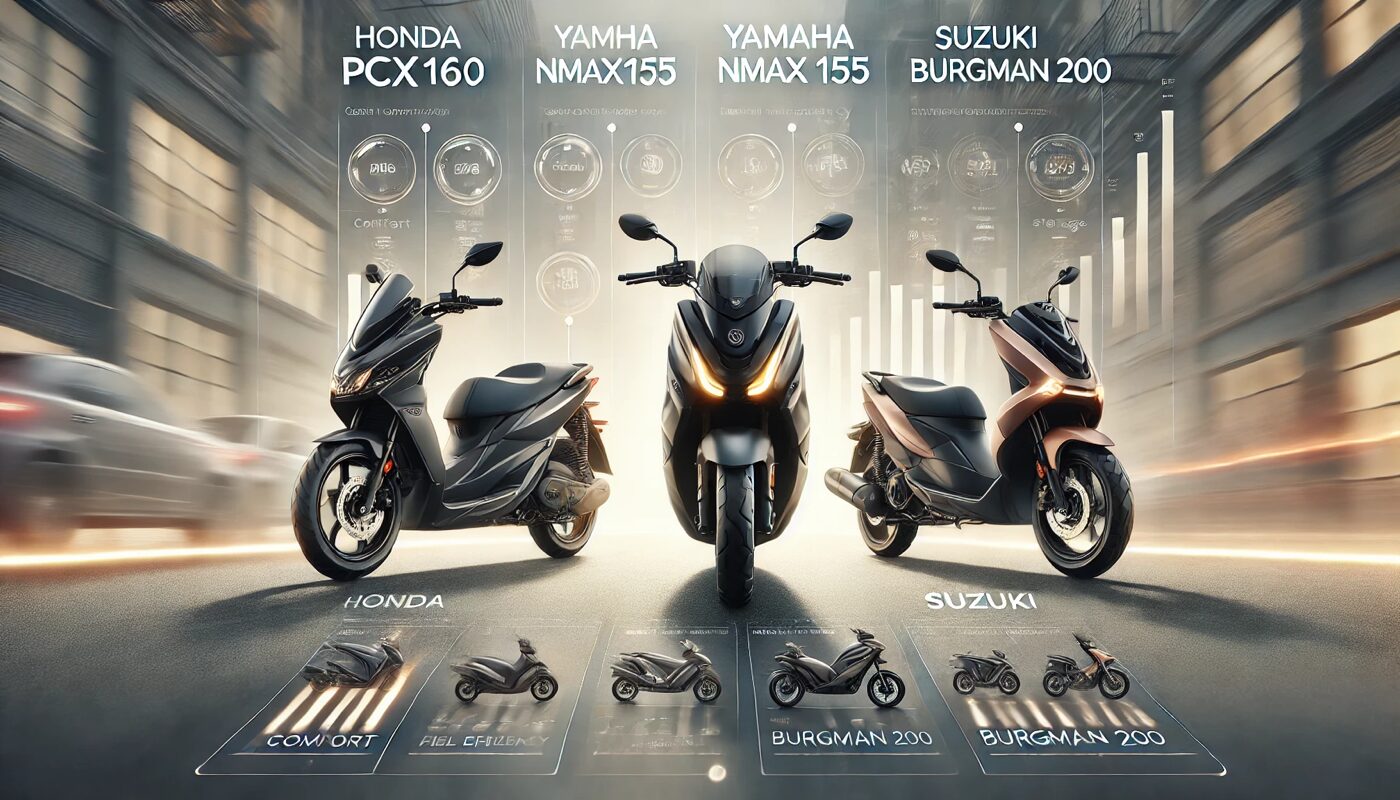 ミドルスクーター市場で人気の高いホンダ PCX160、ヤマハ NMAX155、スズキ バーグマン200。これらのモデルは、通勤からツーリングまで幅広い用途に対応できる性能と快適性を備えています。しかし、それぞれに特徴があり、選ぶ際には自分のライフスタイルや用途に合ったモデルを選ぶことが重要です。本記事では、これら3台のスペックや特徴を比較し、あなたに最適な一台を見つけるお手伝いをします。