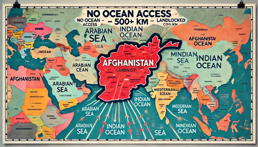 アフガニスタンは完全な内陸国で、どの国境も陸地に接しており、海に面していません。最も近い海にたどり着くには500km以上移動しなければならず、「海へのアクセスのなさ」が貿易や経済発展の障壁になってきました。