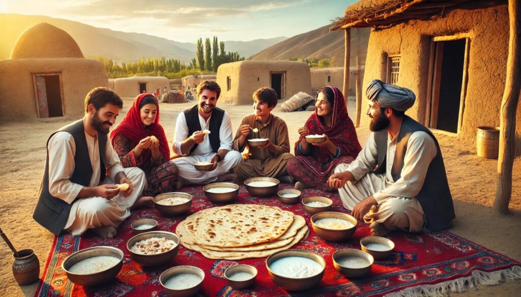アフガニスタンの食卓で欠かせないのが、「ナン」と呼ばれる平たいパンと濃厚なヨーグルト。ナンはタンドールという土窯で焼かれ、外はパリッと中はもっちり。ヨーグルトは、料理に添えたり、飲み物として楽しまれたり、消化にも良いとされて広く親しまれています。
