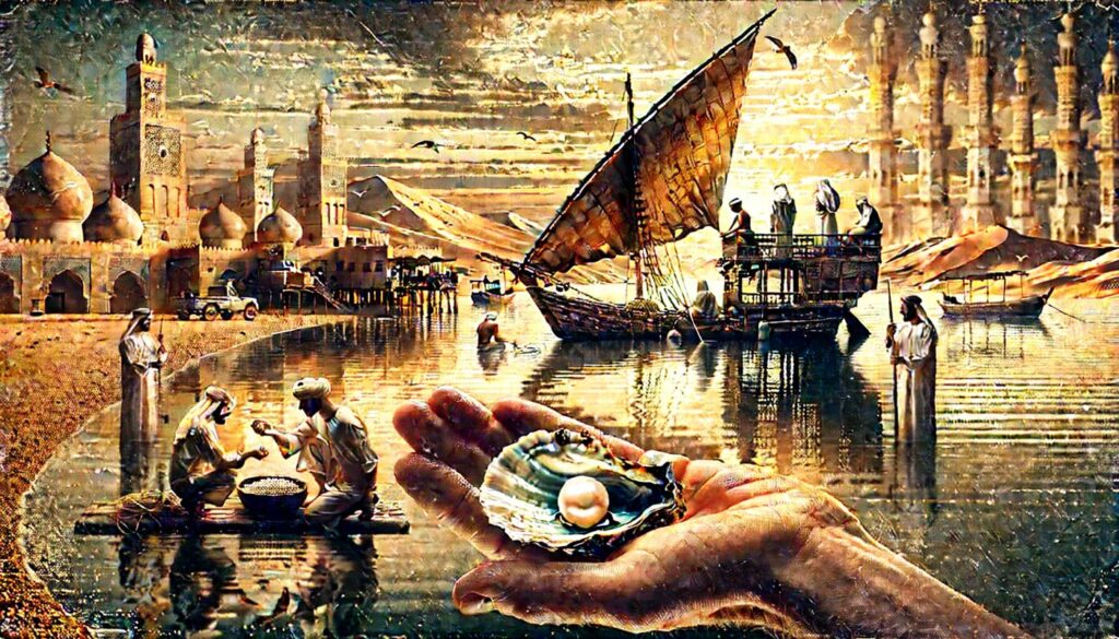 現在は石油によって豊かになったUAEですが、20世紀前半までは「真珠採取」が主要産業でした。湾岸の漁師たちは命がけで海に潜り、自然の真珠を収穫しては海外に輸出していたのです。