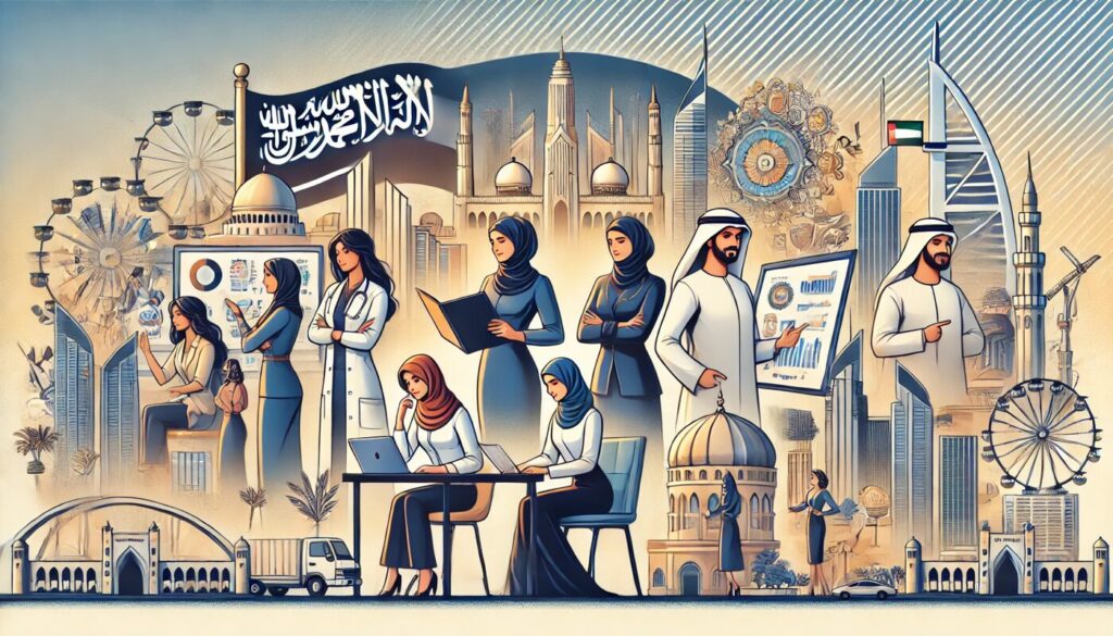 伝統的なアバヤ(黒い衣装)を着ながらも、自信を持って仕事に取り組む女性たちは、UAEの未来を担う存在として期待されています。