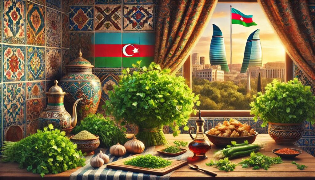 アゼルバイジャンの朝食は、日本や欧米のそれとは一味違います。野菜やチーズ、卵、ジャム、ナッツなどがプレートにずらりと並びますが、特に特徴的なのが新鮮なハーブ類の存在。パクチー、ディル、ミントなどの香り高い葉野菜がたっぷり添えられ、紅茶とともにいただくのが一般的です。
