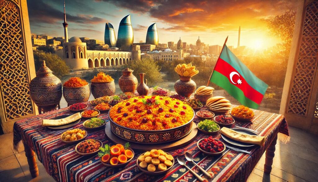 アゼルバイジャンの代表的な料理といえば「プラウ(ピラフ)」。炊き上げたバターライスの上に、スパイスで煮込んだ肉や魚、ナッツ、ドライフルーツなどを豪快に盛りつけたもので、家庭ごとにバリエーションが異なります。