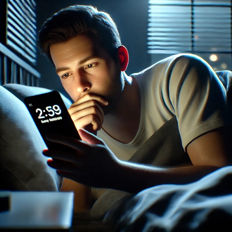 寝る前にスマホをいじると、ブルーライトの影響でメラトニン(睡眠ホルモン)が抑制され、眠りが浅くなります。