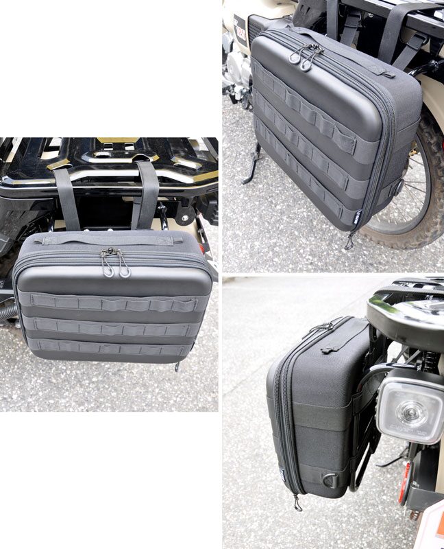 CT125ハンターカブ専用。軽量で型崩れがしにくいEVA素材のサイドバッグ。デザイン性と拡張性を両立するウェビングテープを装備。