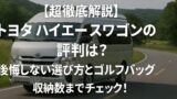 | 大人数(8〜10人)でゴルフ遠征 | WB/WDクラス(大型ワゴン) 例:ハイエースワゴン・キャラバン ➤ ゴルフバッグ4〜5本も余裕 |