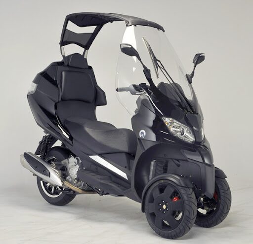 AD3 400は屋根付き三輪スクーターというユニークな存在です。フロント二輪+ルーフを備えたデザインはまるで小型の自動車のようで、雨天でも濡れにくく安心して走れます。エンジンはプジョー製の399cc単気筒を搭載し、高速道路での巡航やタンデム走行にも十分なトルクを発揮します。重量は250kg超と重めですが、その安定感のおかげで直進やコーナリングでの安心感は抜群です。最高速はおおよそ120km/h程度と控えめですが、日常の移動や高速巡航には必要十分でしょう。まさに**“全天候型”**のスクーターで、通勤からツーリングまで天気を気にせず快適に使えるのが最大の魅力です。