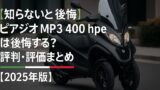 | 5 | MP3 400 hpe | Piaggio | 399cc | 水冷 単気筒 SOHC 4V | CVT | — | 約130km/h | 140〜170万円 | 90〜140万円 | 三輪スクーター・強力安定性 |