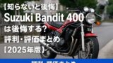 | 7位 | Bandit 400 | スズキ | 販売終了 | 約54〜60万円 | 約20〜70万円 | 15〜22 km/L | 参考値あり | 15L | 398cc | 油冷 直列4気筒 DOHC | 53〜59PS |