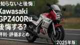 | 8位 | GPZ400R | カワサキ | 販売終了 | 約60〜70万円 | 約20〜70万円 | 15〜22 km/L | 参考値あり | 18L | 399cc | 直列4気筒 DOHC | 53〜59PS |