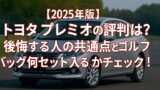 | 8位 | トヨタ プレミオ | 中古リセール車種例として頻出 | 特に5年落ちデータで高評価 |