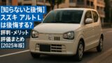 | アルト L | スズキ | 25.8 | 660cc ガソリン | 約114–132万円 | 価格重視・シンプル装備 |