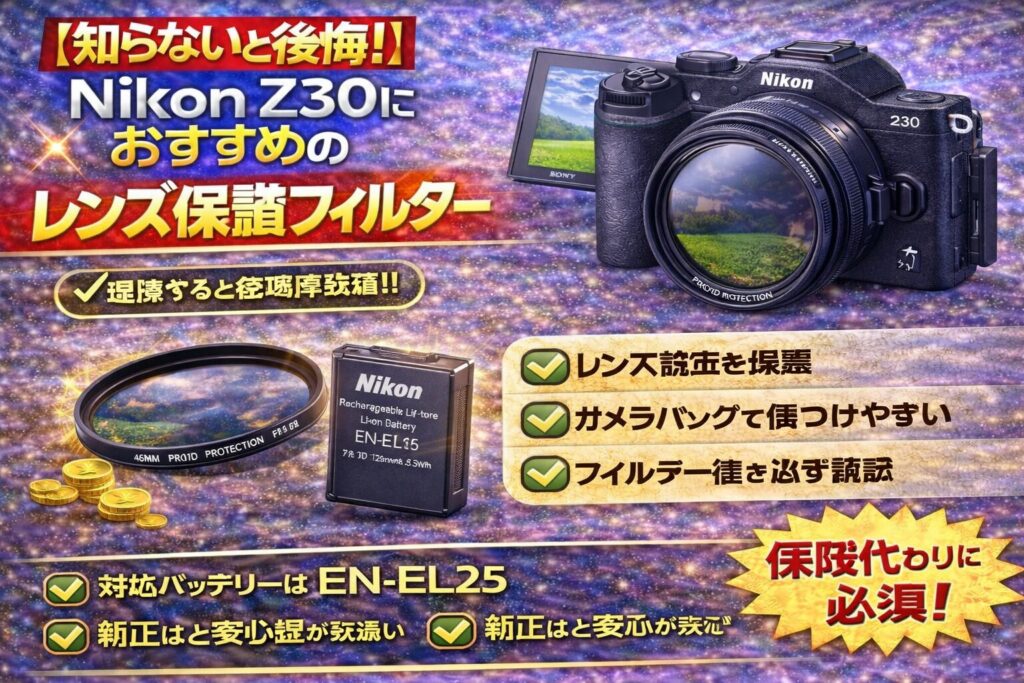 | 必須 | レンズ保護フィルター | ★★★★★ | 前玉保護は最優先 |