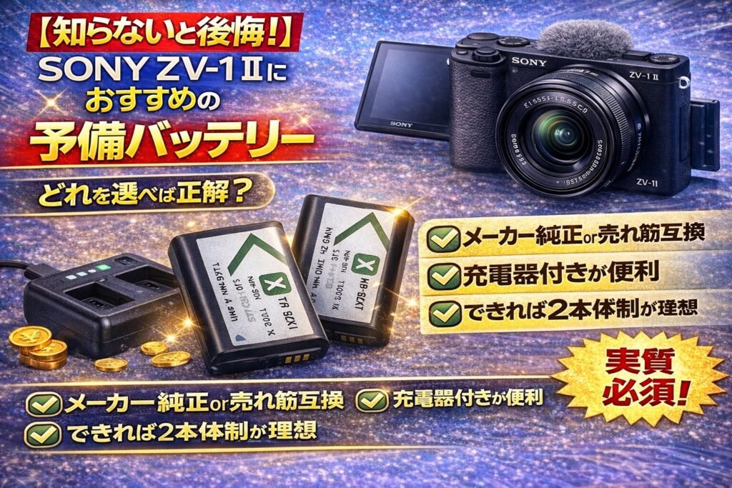 | 必須 | 予備バッテリー | ★★★★★ | 動画・Vlogでは実質必須 |