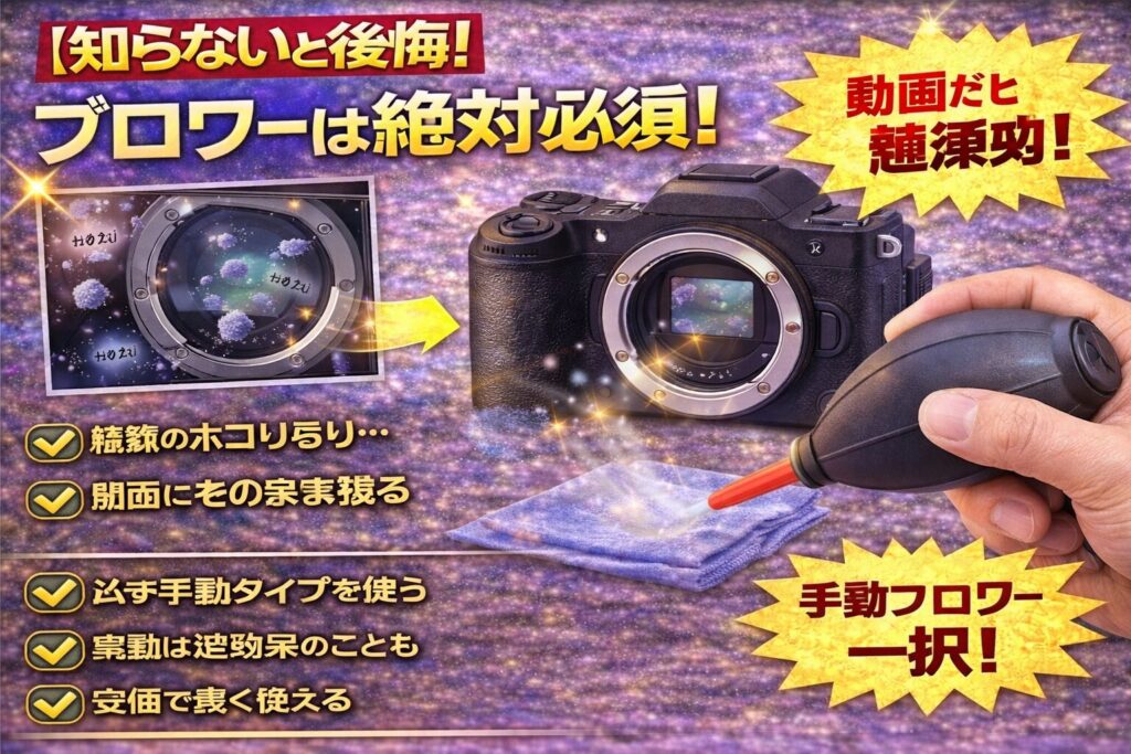 レンズ交換時のホコリ除去に必須。