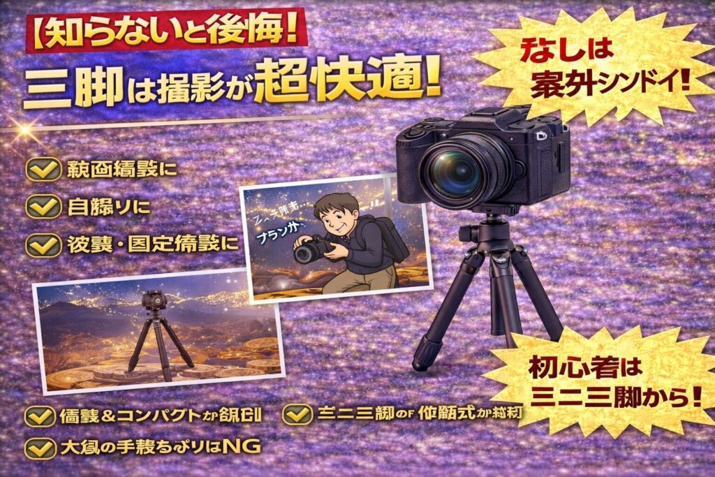 | 便利 | 三脚 | ★★★★☆ | 動画・固定撮影 |