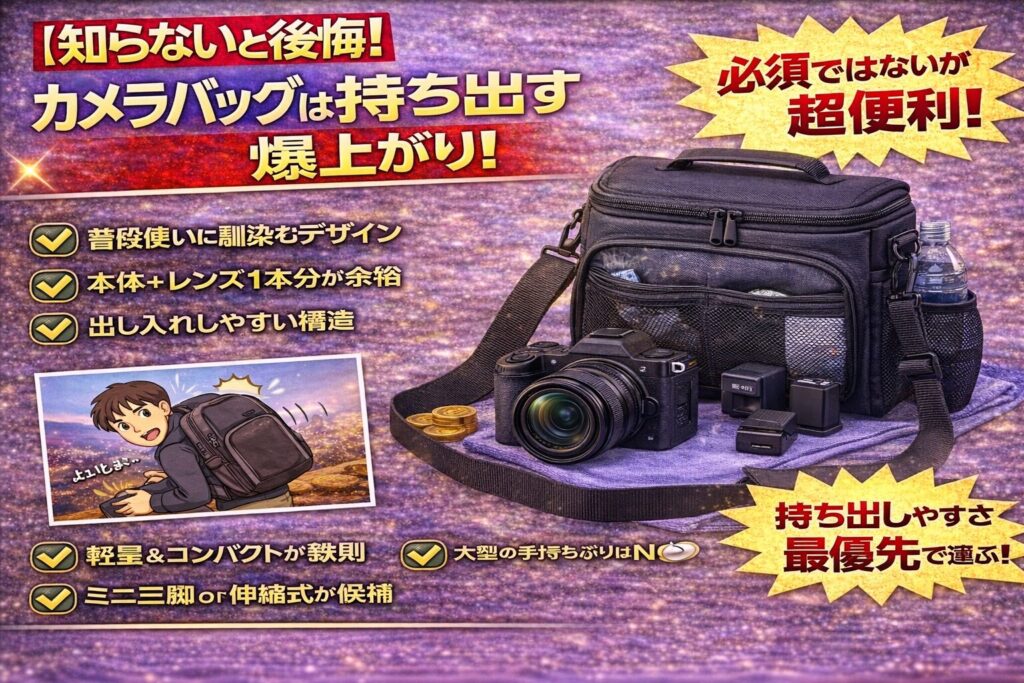 | 便利 | カメラバッグ | ★★★☆☆ | 持ち運び重視 |