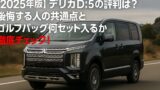 | 9位 | 三菱 デリカ D:5 | 2.2Lクリーンディーゼル 4WD | 12.6 | 420〜480 | ミニバン×SUVの独自性で人気。4WDモデルは中古で特に高値が付きやすい。 |