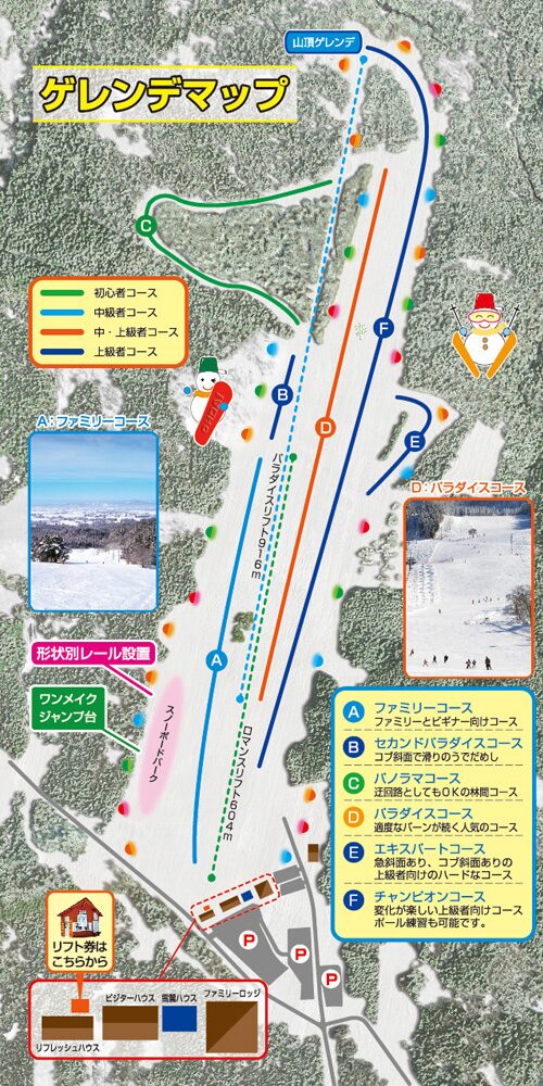 • ゲレンデ周辺に飲食・休憩施設が少ない場合がある