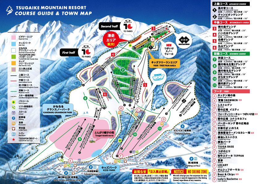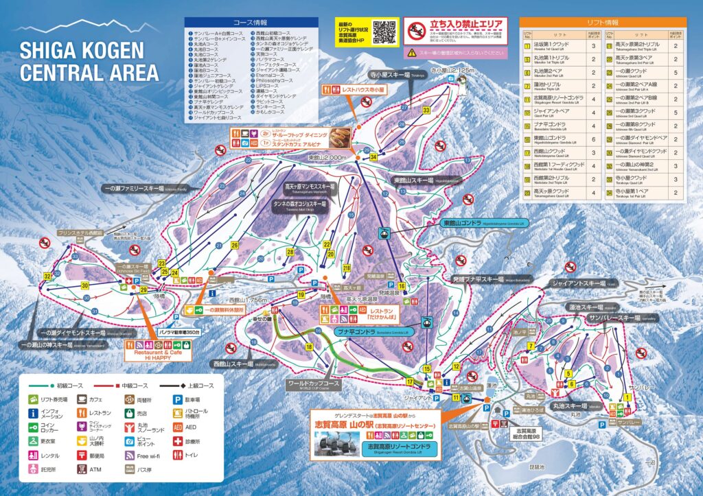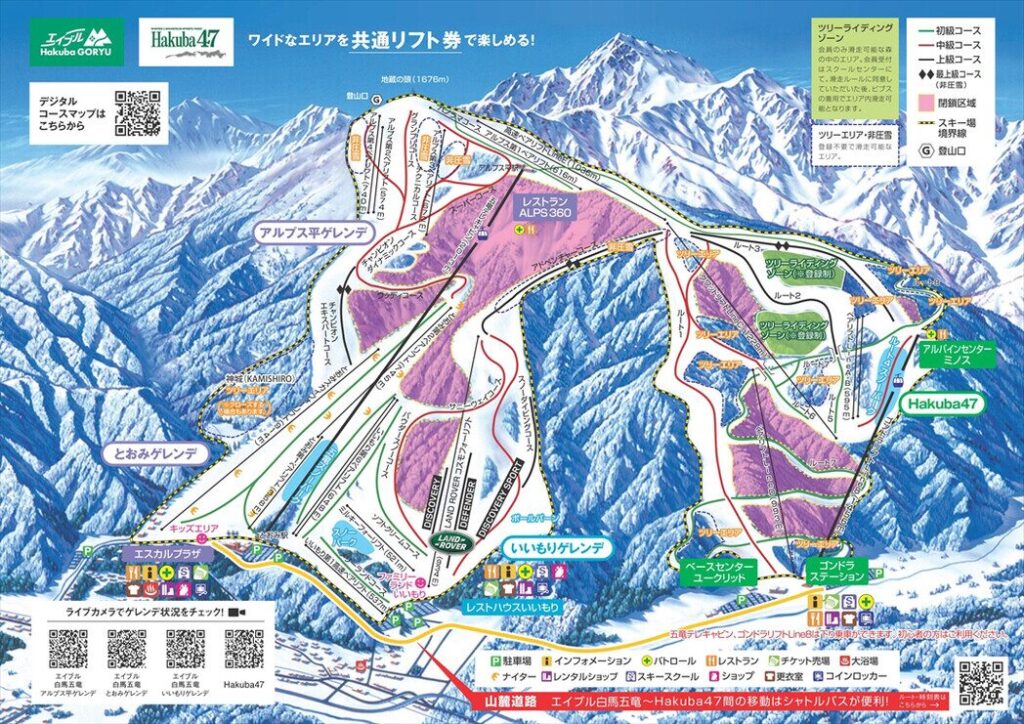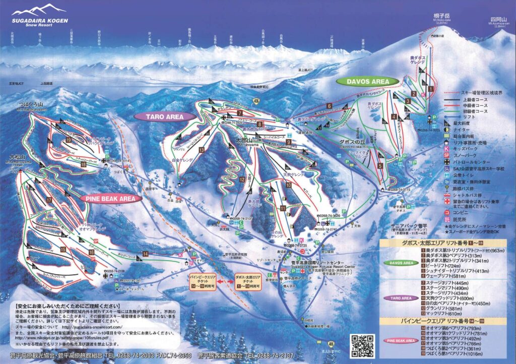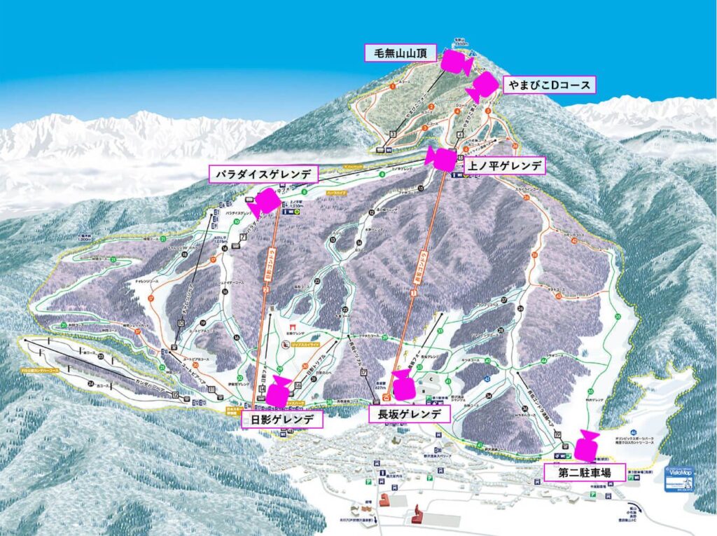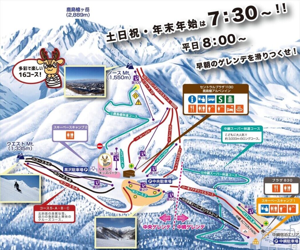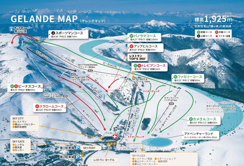 北アルプス・上信越高原などの山岳地帯に位置し、山頂と麓の高低差を活かしたコース設計が可能。 - 1本で麓まで滑れるレイアウトが多い