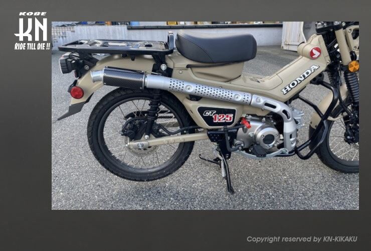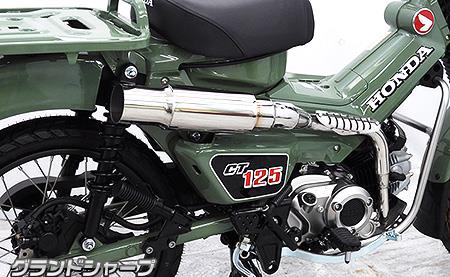 パイプワークとサイレンサーデザインにより純正マフラーのモッサリ感を無くしCT125本来のスタイリッシュなデザインを引き出すマフラーです。 また、周辺環境にも配慮した音量、音質に重点を置いています。 エキゾーストパイプ前部にサブチャンバーを設置し 出だしから圧倒的なトルク感を感じられます。