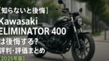 ELIMINATOR 400は、2023年に復活を果たしたカワサキのクルーザー。398cc並列2気筒で48PSを発揮し、低回転から扱いやすい特性を持っています。しかし車重が215kgと重く、さらに低速トルクを重視したギア比設定が燃費に悪影響を与えています。実測燃費は20〜25km/L程度に留まり、同じエンジンを搭載するNinja 400やZ400と比べると明らかに劣ります。