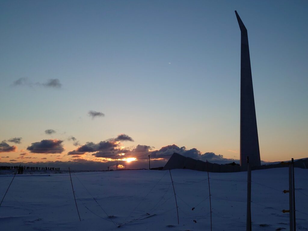 最北端の碑と朝日を一緒に撮影できる貴重なスポットです。極寒ですが、空気が澄んでいるため美しい日の出が期待できます。