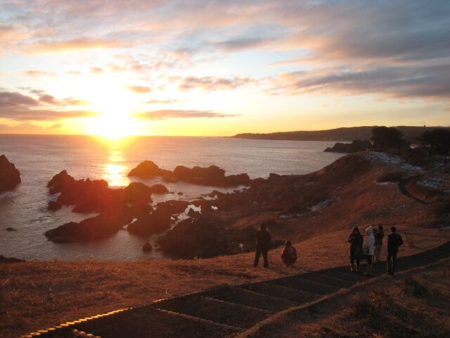 遮るもののない水平線から太陽が昇るため、初日の出の迫力は県内でもトップクラス。