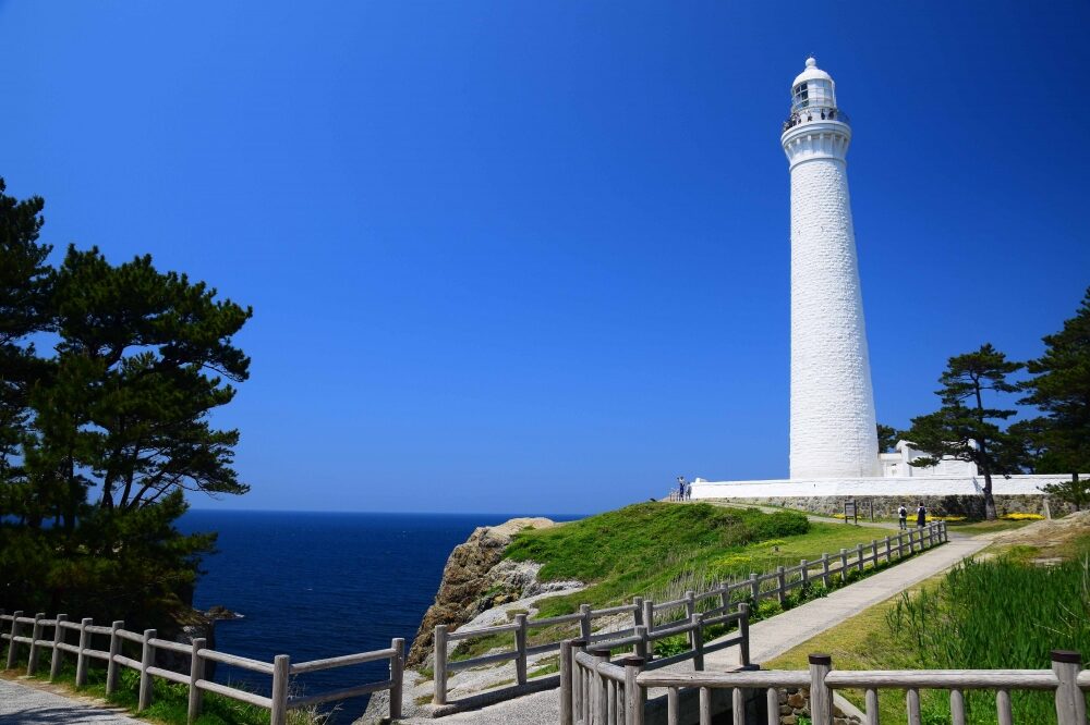 日本海を一望できる白亜の灯台。