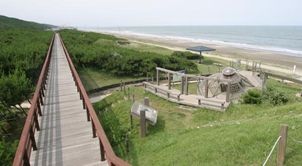 広い砂浜が続く海岸で、遮るもののない初日の出を楽しめます。