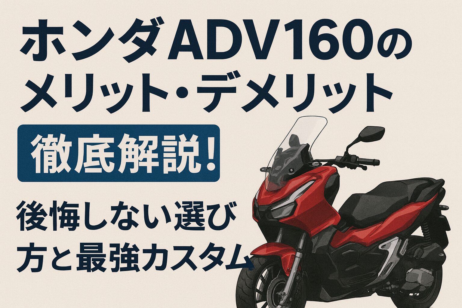 ホンダADV160は、実用性と趣味性を両立した「冒険できるスクーター」です。都会の通勤からアウトドアツーリングまで幅広く活躍し、スクーターにありがちな「物足りなさ」を感じさせません。一方で、価格・足つき性・パワーに妥協が必要な場面もあります。